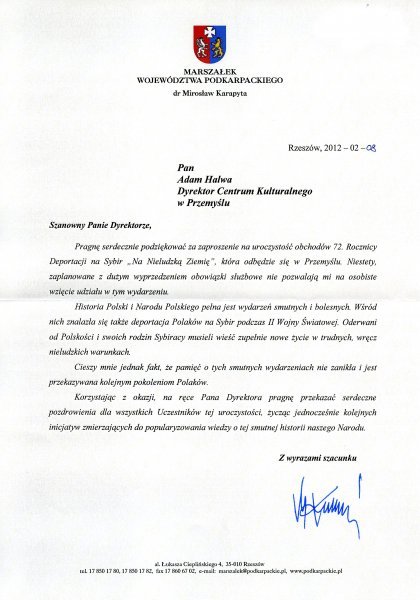 Podziękowanie od Marszałka Województwa Podkarpackiego Mirosława Karapyty
