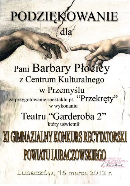 Podziękowanie dla Barbary Płocicy za przygotowanie spektaklu "Przekręty"