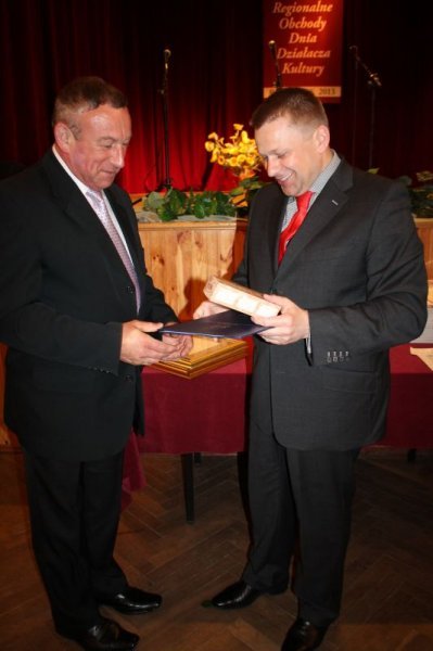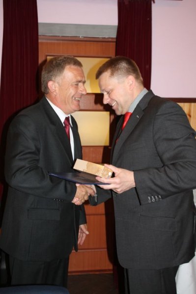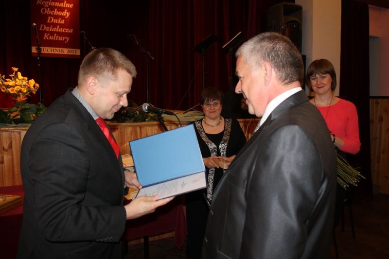 Dyrektor Adam Halwa wręcz list gratulacyjny Zbigniewowi Brudkowi z Pawłosiowa