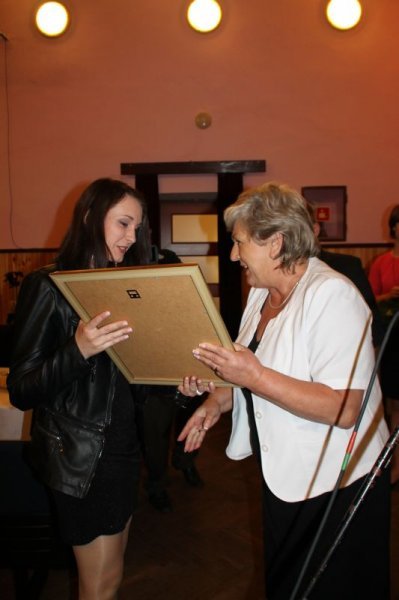 Zofia Karwańska wręcza list gratulacyjny Annie Barszczewskiej